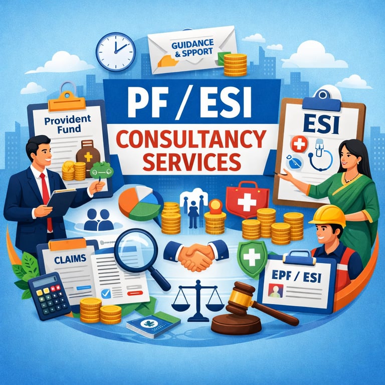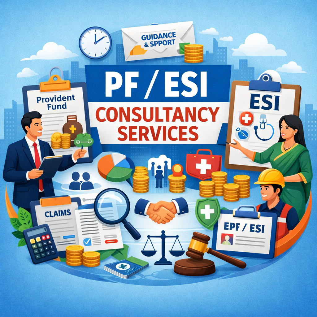 कर्मचारियों की सुरक्षा, बिज़नेस की कानूनी मजबूती। समय पर रजिस्ट्रेशन, रिटर्न फाइलिंग और कम्प्लायंस सेवाएँ।