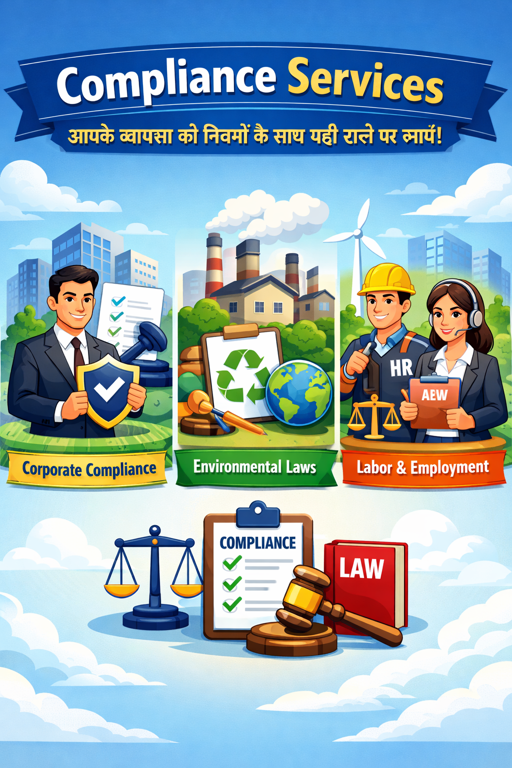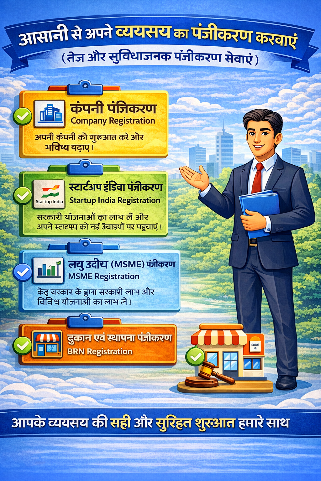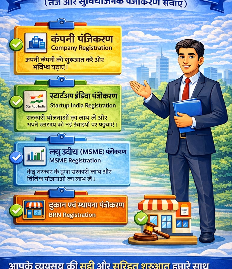आपके व्यवसाय को कानूनी रूप से सुरक्षित, सुव्यवस्थित और निरंतर प्रगति की दिशा में आगे बढ़ाना।